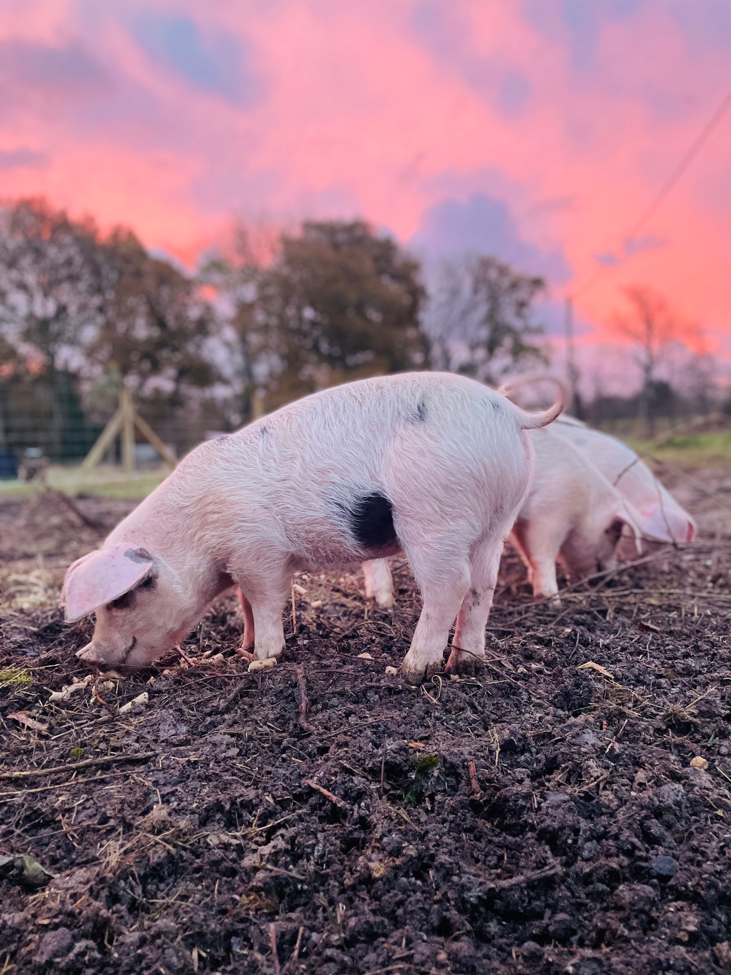 Outdoor reared and free range pork from rare breed pigs such as Gloucester Old Spots, Tamworths and Mangalitsas. Reared here will be avalable from our new Farm Shop in 2026